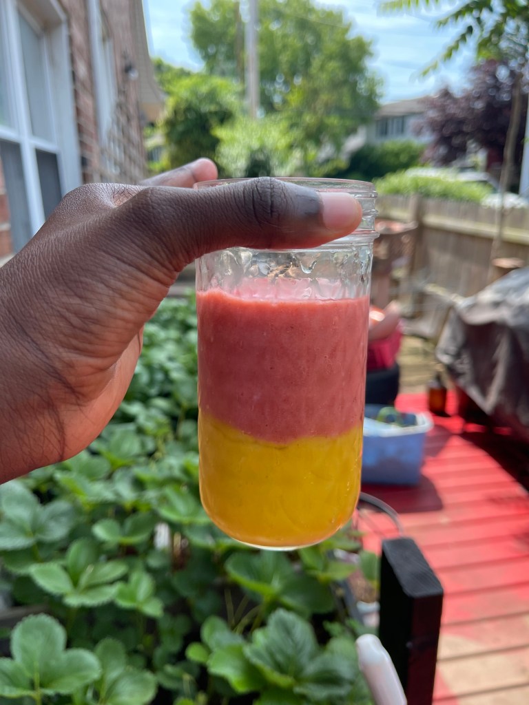 Mind you, when my son said he wanted both smoothies, he was not talking about me combining all the fruits to make one smoothie; he wanted to see both colors. But of course, why make mommy’s job any easier? And lucky for you, you too get a two-in-one recipe that you can combine to make one delicious drink or separate to get a similar result. I guarantee that you will love the taste and you will be refreshed. What you see below is the result of his request.