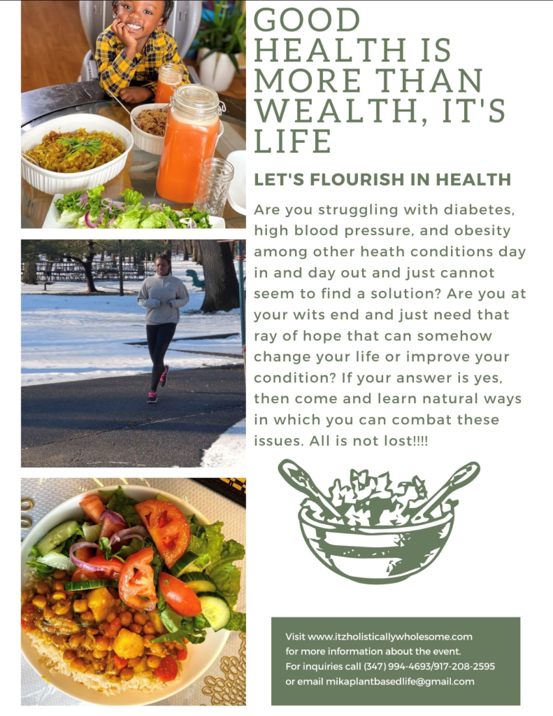Let us a reason and find solutions together. If you can attend, do so because you will not regret it. You will learn about the Eight Laws of Health, natural remedies, and recipes. We will demonstrate how to make a few plant-based recipes, smoothies, juices, and natural products. There will also be plant-based/vegan food available for you to try. This event is free, but we are open to donations for future events if you wish to do so; it is all up to you. For those who are so far away, we are trying to make it available on other platforms. Would you please stay connected for future updates?