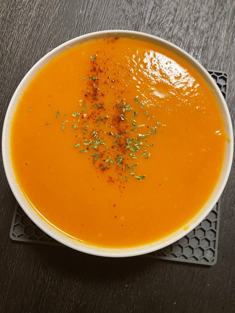 My son has been under the weather a bit for a few days and asked for warm soup. So his grandmother and I teamed up to make sweet potato-squash soup. She washed and cut all the ingredients and put them on the stove to boil, and once they were soft, I took over, added the seasoning for the flavor, and then pureed them. Finally, I added home-boiled chickpeas for additional protein. It was delicious and, my son loved it; he gave two thumbs up.