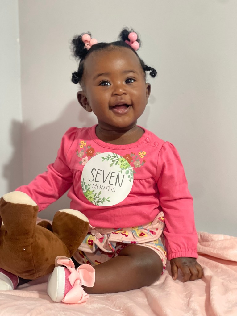 And just like that, it’s seven months! I cannot say it enough; time is flying. So here is baby Emmah-Rose; today, she turns seven months old. These days, she has been up to a lot. As I try to write this post, she is wrestling with me for the keyboard so that she can pound the keys; that’s her way of typing.