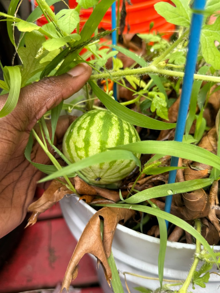 Growing watermelon has always been a goal of mine. In the past, I planted them too late, and only a few ever started growing, never reaching full maturity before fall. This year, I got an early start. While they began strong, they’re now struggling a bit. Several watermelons have started to grow, though two didn’t make it. I’m hoping at least one will reach maturity—fingers crossed!