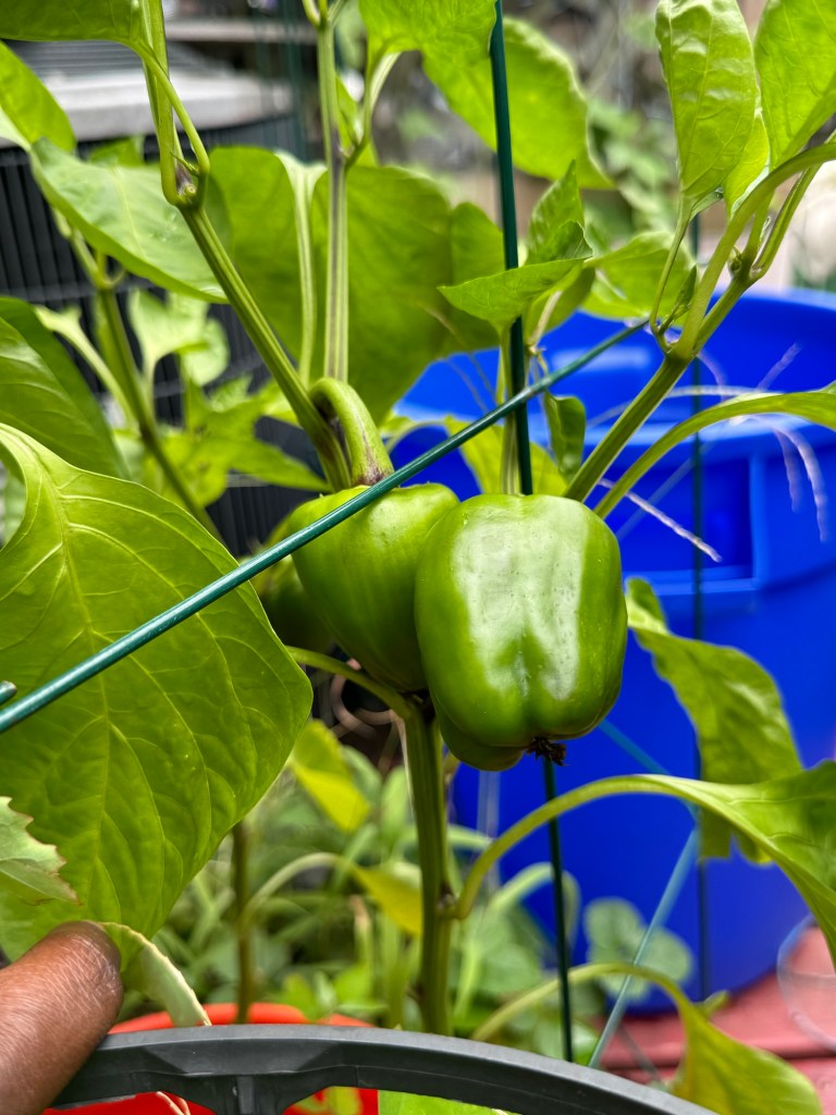 My bell peppers are thriving, and they’ve started to bear fruit. I can’t wait to harvest them.