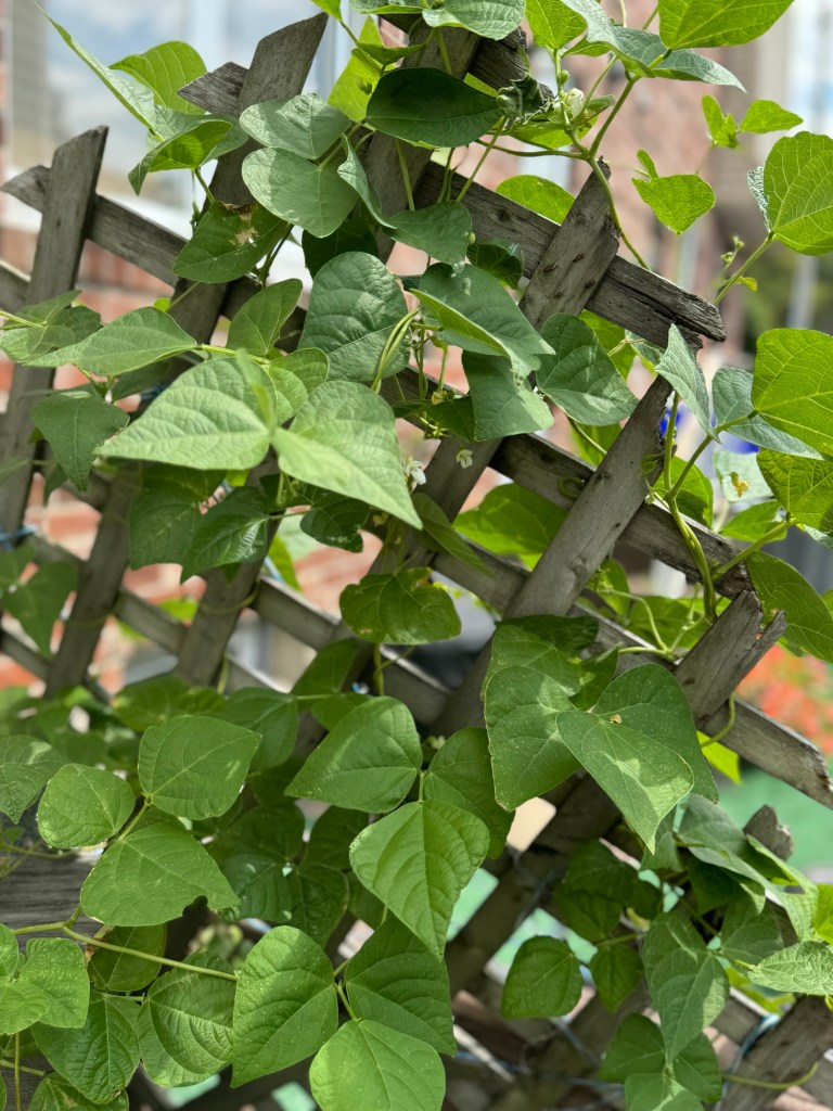 A few weeks ago, the okra and bean plants were vibrant, then they began to struggle. Thankfully, the recent rain seems to have revived them—they’re looking better and have even started to flower.